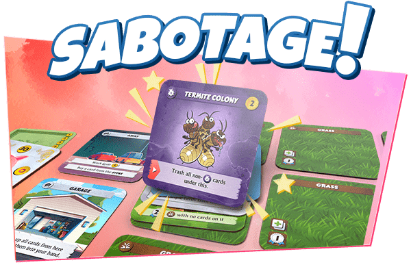 Turf War is a tableau-building card game where rival neighbors race to prove that their yard is the best on the block.